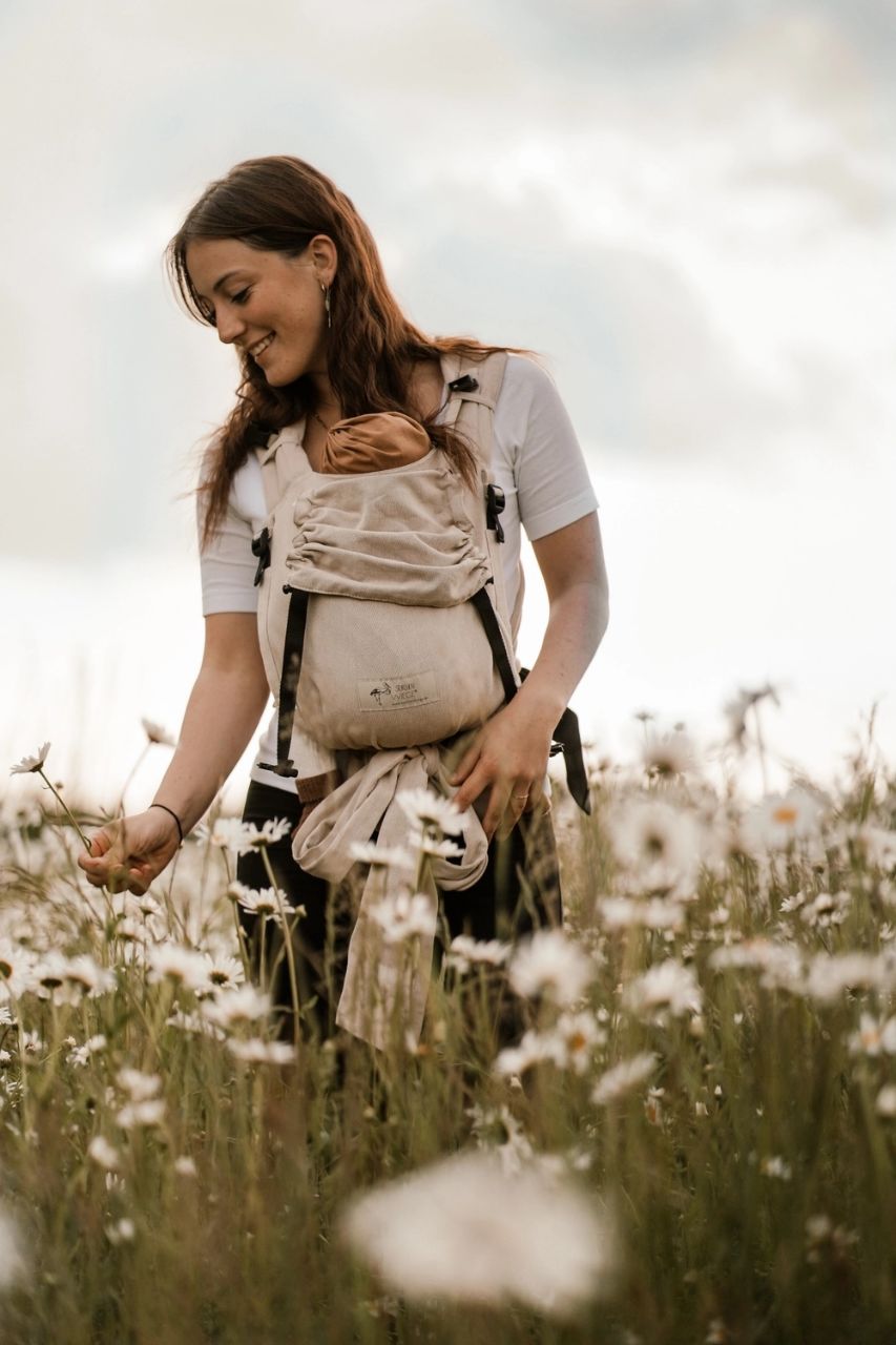 Бесступенчатая регулировка ширины спинной панели снизу, а также высоты — сбоку, чтобы слинг идеально подходил вашему малышу в каждый момент времени