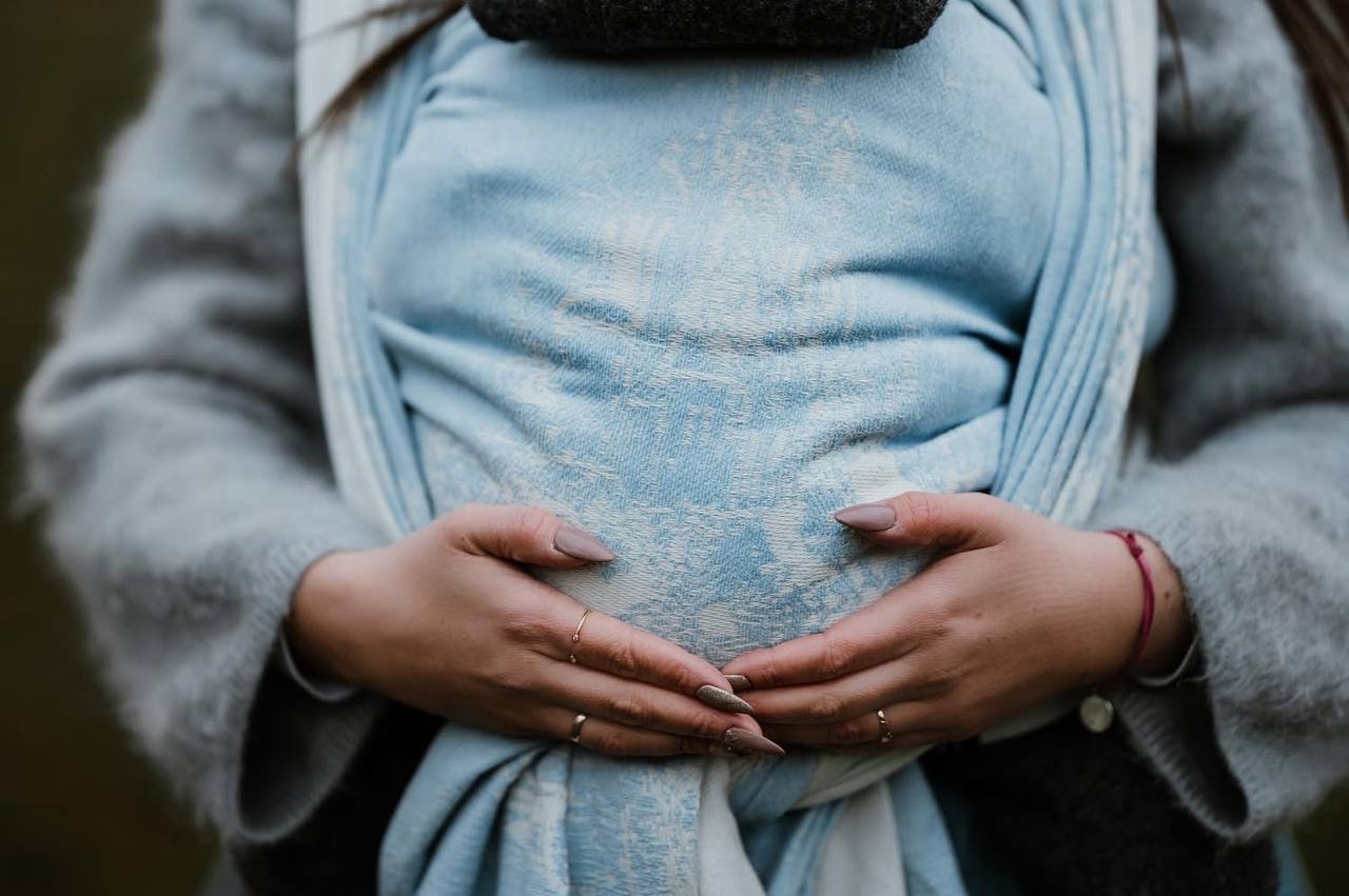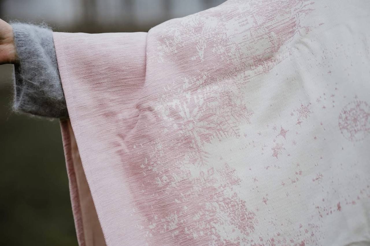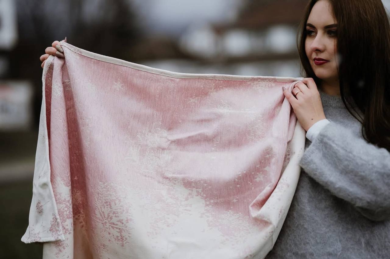 Слинг в наличии — в розовом цвете. Фото релиза в голубом цвете представлены для более полного представления о рисунке полотна. Кольца серебристого цвета